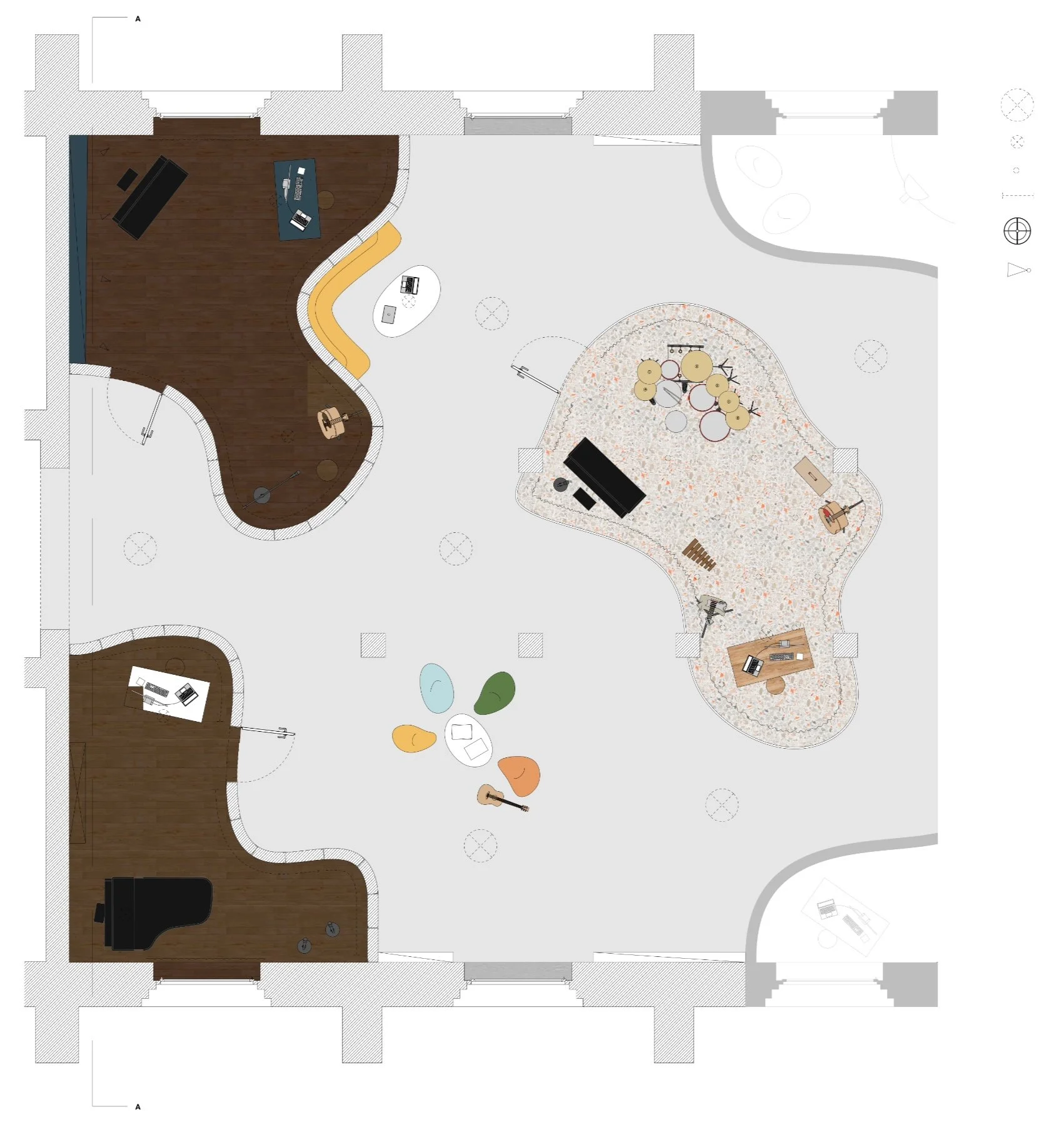 Das, was die Musik verbindet sind die Emotionen, die wir mit ihr verbinden. Jeder, der Musik hört, empfindet das Hören ganz individuell und persönlich. Der Entwurf soll die Verbindung zwischen Raum, Musik und Emotionen herstellen. Der Musiker soll den Klangkörper ganz individuell erfahren und seine Musik auf neue Art und Weise entstehen lassen können.